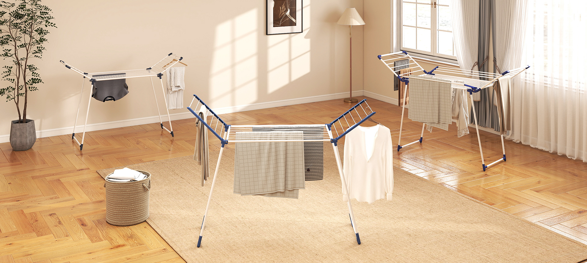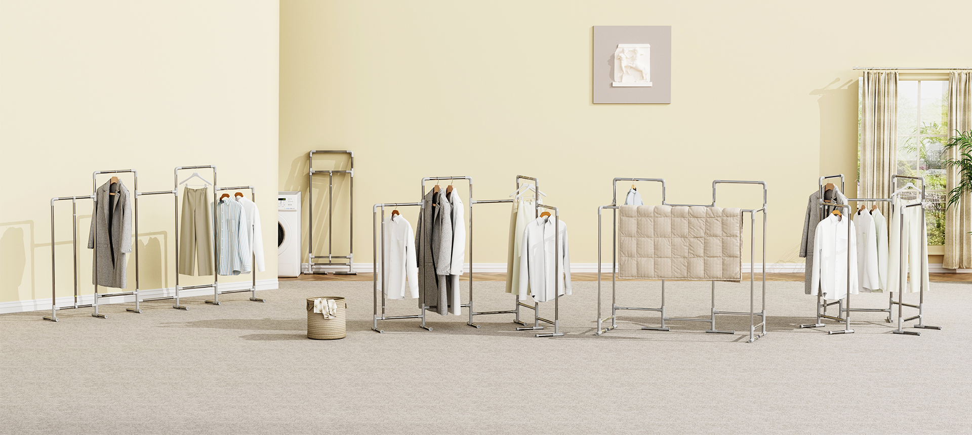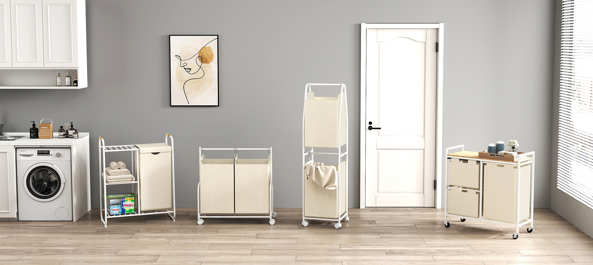 涵盖烫衣板、家用小推车、抽屉柜、晒衣架、脏衣袋、鞋架。